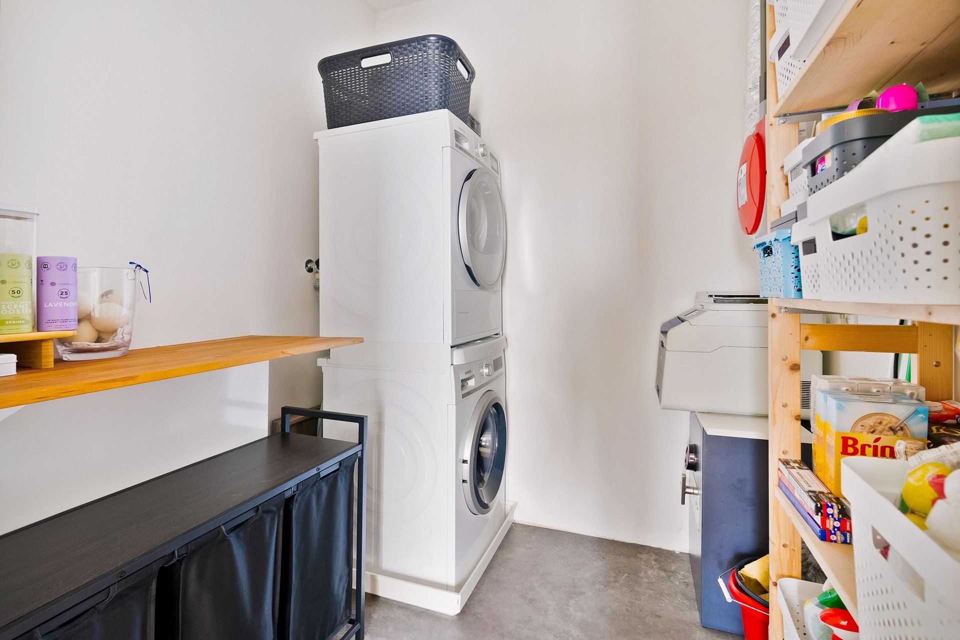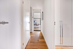 Aangrenzend aan de hal ligt de interne berging/wasruimte met aansluitingen en extra kastruimte.