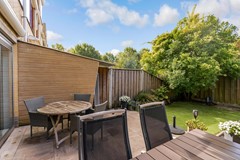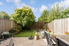 De onderhoudsvriendelijke achtertuin is gelegen op het zuidwesten en voorzien van een achterom.
