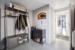 Via de ruime entree/hal (voorheen berging) betreedt u de woning. In de hal bevinden zich de vernieuwde meterkast (inclusief vervangen gasleiding) en een modern toilet met zwevend closet en fonteintje.