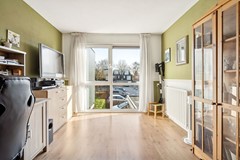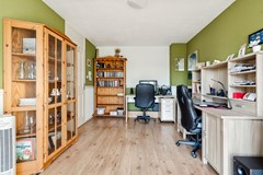 De zolderverdieping is ingericht als volwaardige derde slaapkamer van circa 14,7 m². Op de overloop is ruimte voor de wasmachine en bevindt zich de omvormer van de zonnepanelen, netjes opgesteld. Dankzij de hoogte en indeling is dit een comfortabele extra woonlaag.