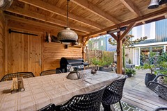 De achtertuin is gelegen op het westen, waardoor u tot in de avond van de zon kunt genieten. De tuin beschikt over een overkapping en een externe berging van circa 4,2 m², ideaal voor fietsen en opslag.