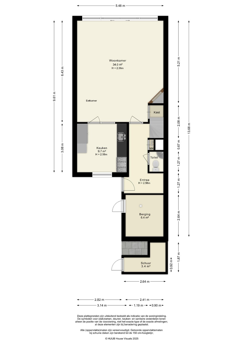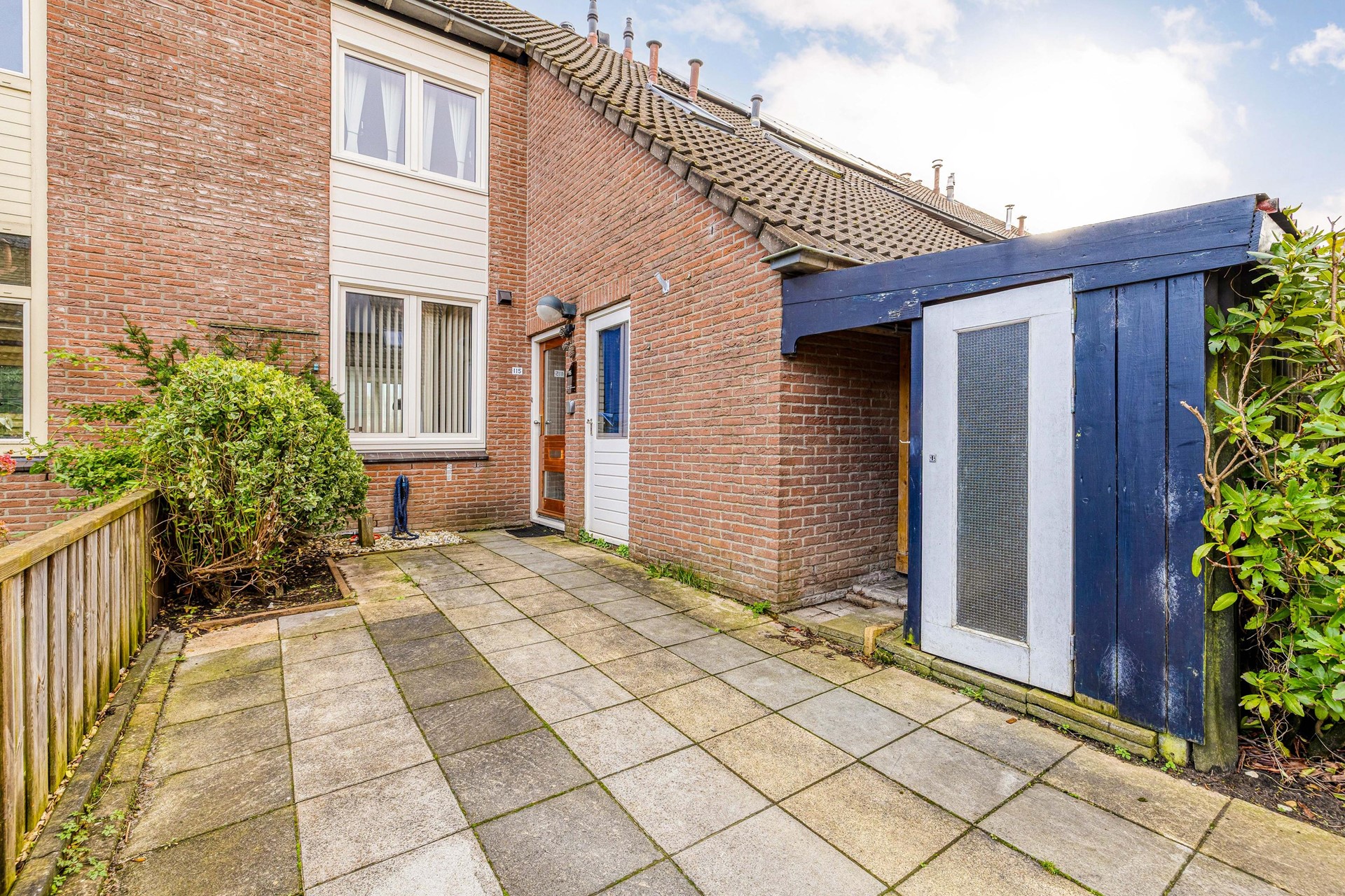 Aangrenzend aan de entree bevindt zich de berging (ca. 6,4 m²) met daarachter een separate schuur (ca. 3,4 m²), ideaal voor fietsen, opslag of hobbyruimte