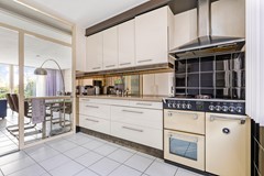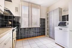 De dichte keuken (ca. 9,7 m²) bevindt zich aan de voorzijde van de woning en biedt voldoende werk- en kastruimte.