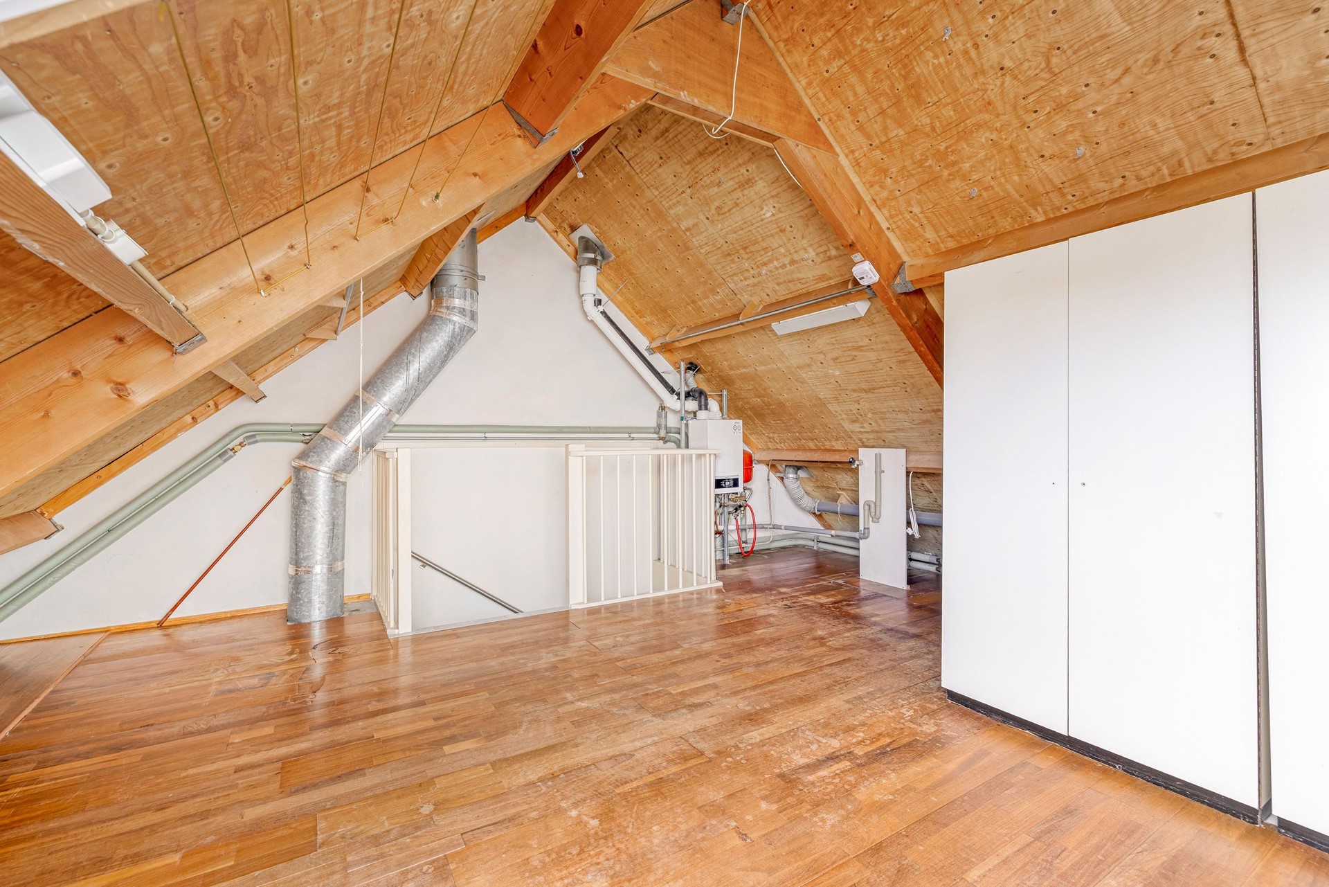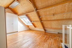Via vaste trap bereikbare zolderverdieping met derde slaapkamer (ca. 13,4 m²). Deze ruimte is uitstekend te gebruiken als slaapkamer, werkruimte of hobbykamer. Hier bevindt zich tevens de aansluiting voor de wasmachine en extra opbergruimte.