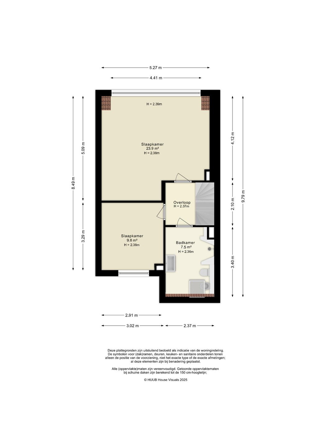 - Slaapkamer 2 (ca. 9,8 m²) gelegen aan de voorzijde.