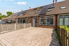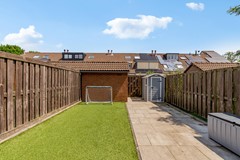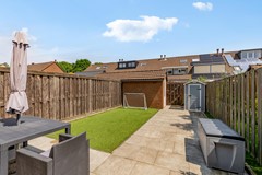 De achtertuin is verzorgd aangelegd met bestrating (2020) en kunstgras, en gelegen op het oosten. Achterin de tuin staat een stenen berging ideaal voor fietsen en tuinspullen. Aan de voorzijde is er een eigen oprit met parkeergelegenheid op eigen terrein.