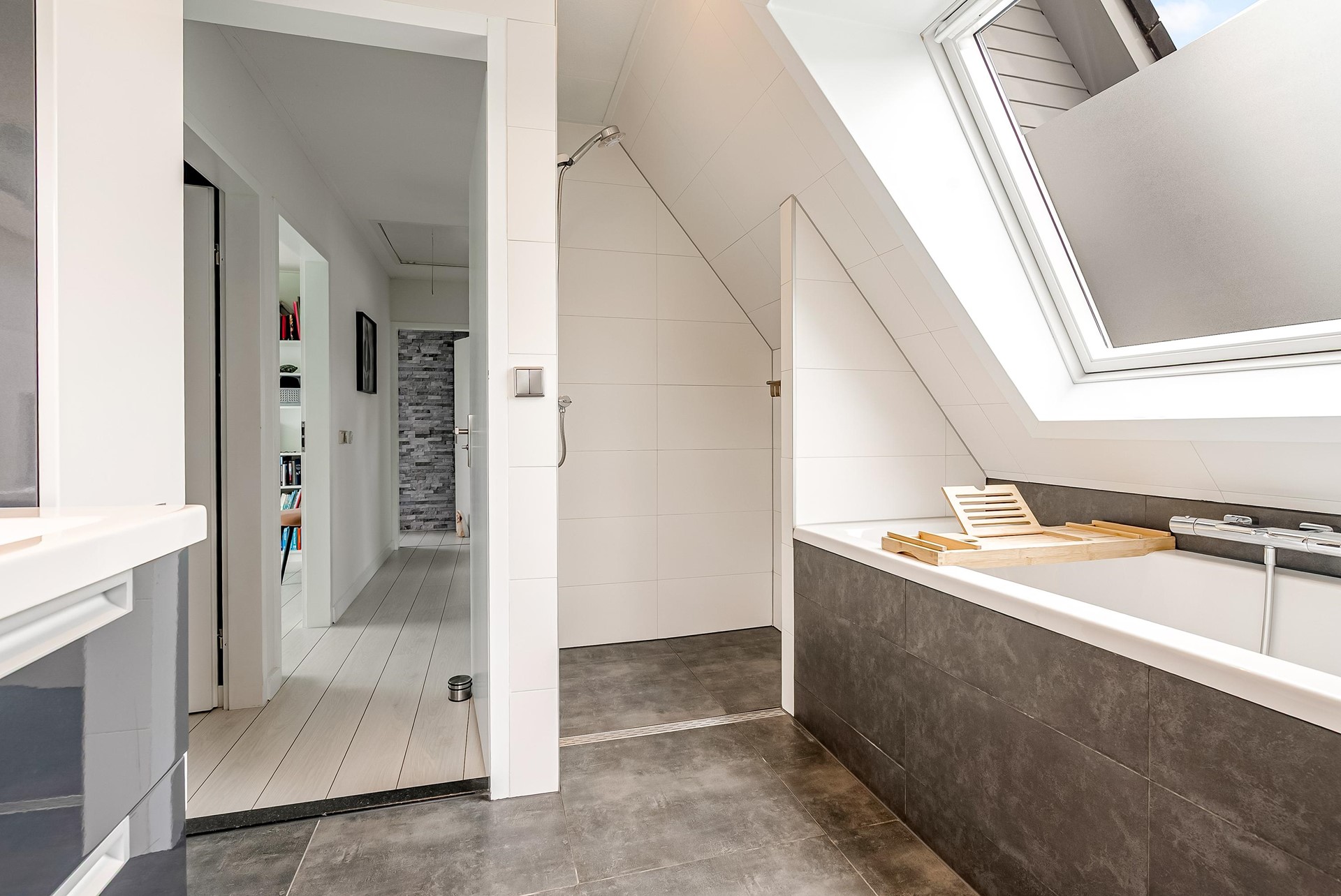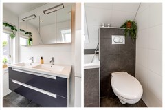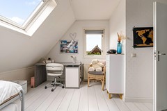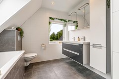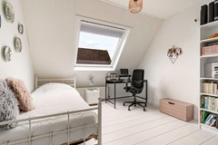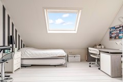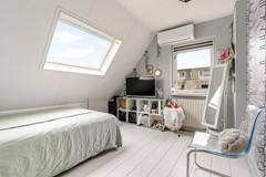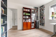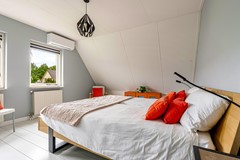 Een zeldzaamheid: vijf slaapkamers, variërend van ca. 9 tot 17 m². Allen met laminaatvloeren, horren en veel lichtinval. De badkamer (2012) beschikt over een ligbad, aparte douche, toilet, dubbele wastafel én vloerverwarming. Ook bevinden zich op de eerste verdieping 2 airco's.