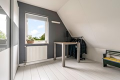 Via een vlizotrap bereik je de praktische bergvliering met een hoogte van 2,00 meter. Ideaal voor het opslaan van koffers, seizoensspullen of gewoon als extra opbergruimte, zonder dat het je woonruimte in beslag neemt.