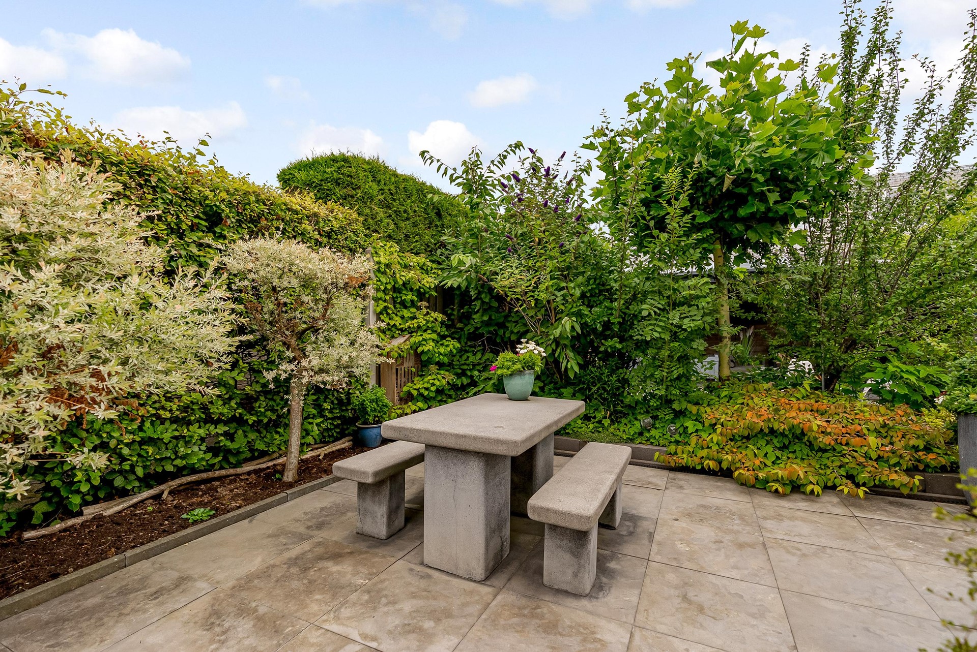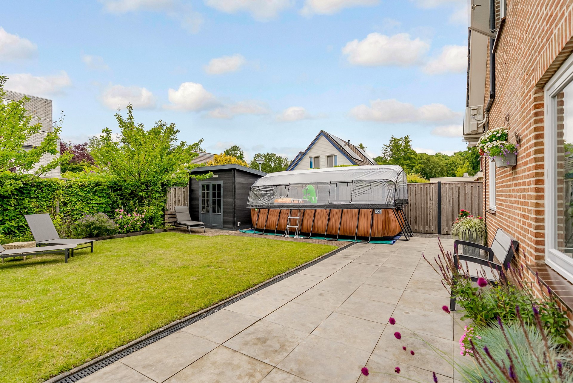 Verder vind je hier een vrijstaande kunststof berging en meerdere plekken om heerlijk in de zon of juist beschut te zitten. Een fijne tuin met volop privacy, die in elk seizoen uitnodigt tot buitenleven.