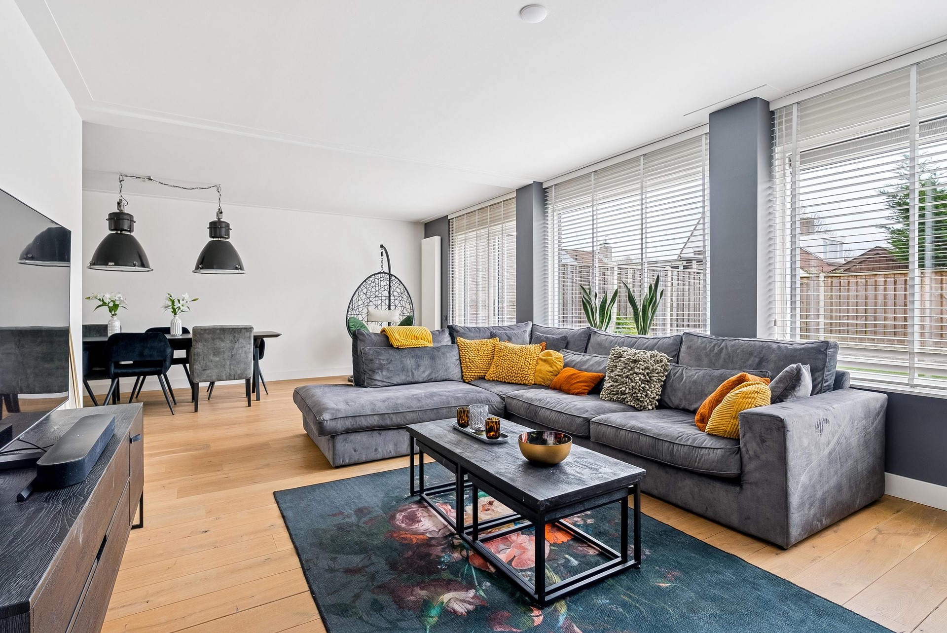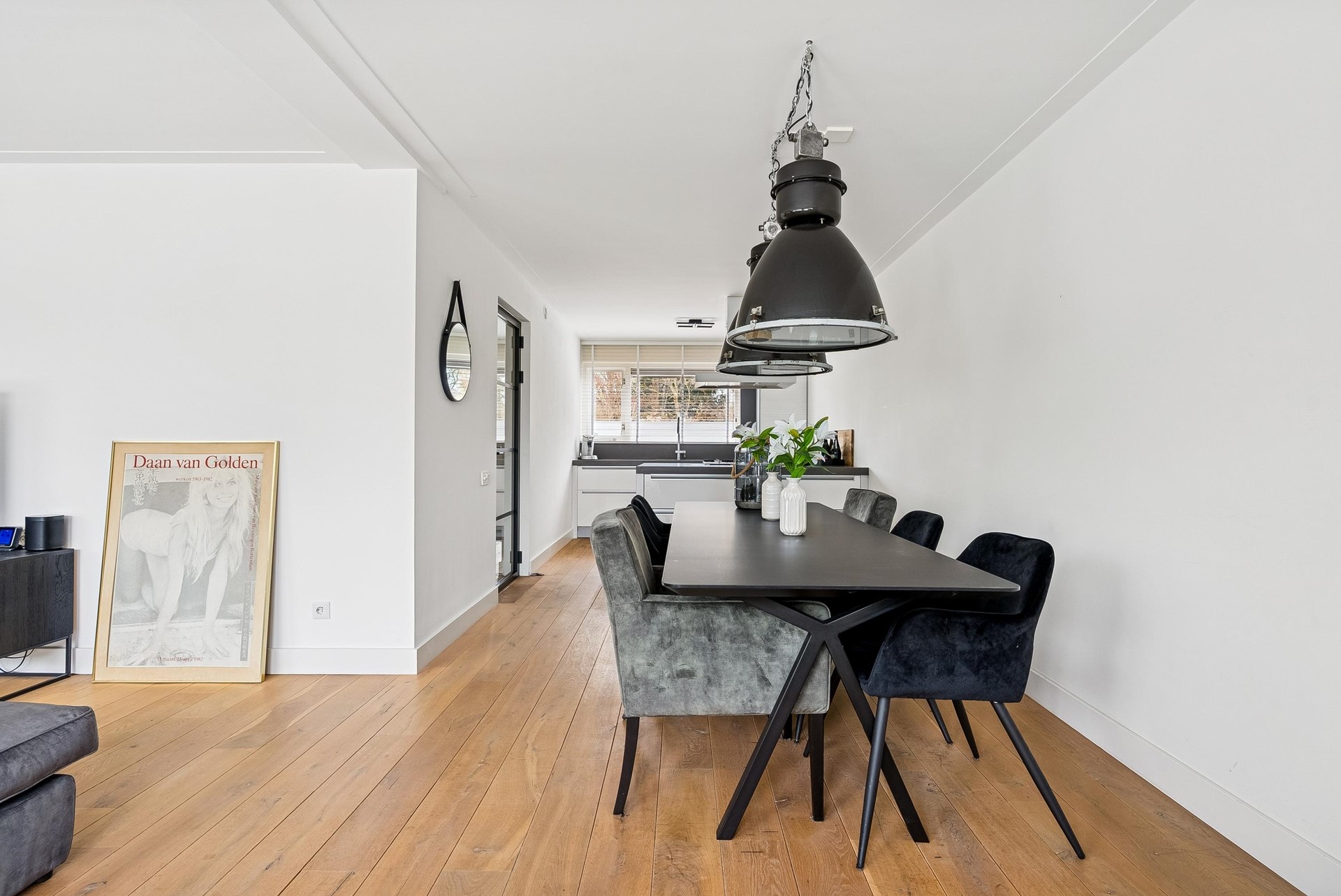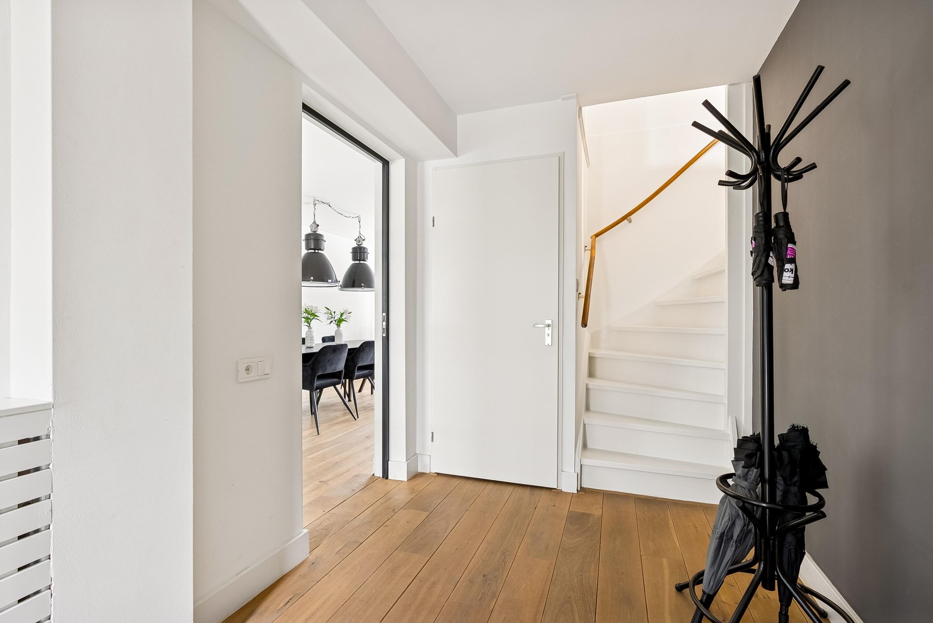 Een echte blikvanger is de prachtige kaderdeur, die toegang geeft tot de woonkamer en direct een luxe uitstraling creëert.