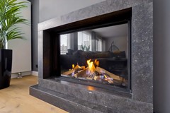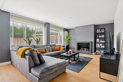 De 8.25 meter brede woonkamer biedt véél privacy, is tuingericht en strekt zich uit over de volledige breedte van de woning. De sfeervolle DRU (Centro 100) gashaard met leistenen schouw zorgt voor extra aangename warmte en ambiance. Via de openslaande deuren heeft u toegang tot de onderhoudsvriendelijke achtertuin welke volledig op het zuiden is gelegen. In de woonkamer is nog een extra hoek gecreëerd om te werken of om dagelijks te gebruiken spullen of speelgoed uit het zicht op te bergen.