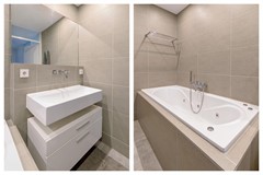 Royale, lichte overloop. 3 slaapkamers, respectievelijk “17,4”, “8”en “7,2” m2. Één slaapkamer aan de voorzijde beschikt nog over een balkon. Grote, luxe badkamer met Jacuzzi, inloopdouche (afsluitbaar met glazen deur) met stortdouche, mechanische ventilatie, zwevend toilet, badkamermeubel met wastafel, spiegel (2026), designradiator en inbouwverlichting.