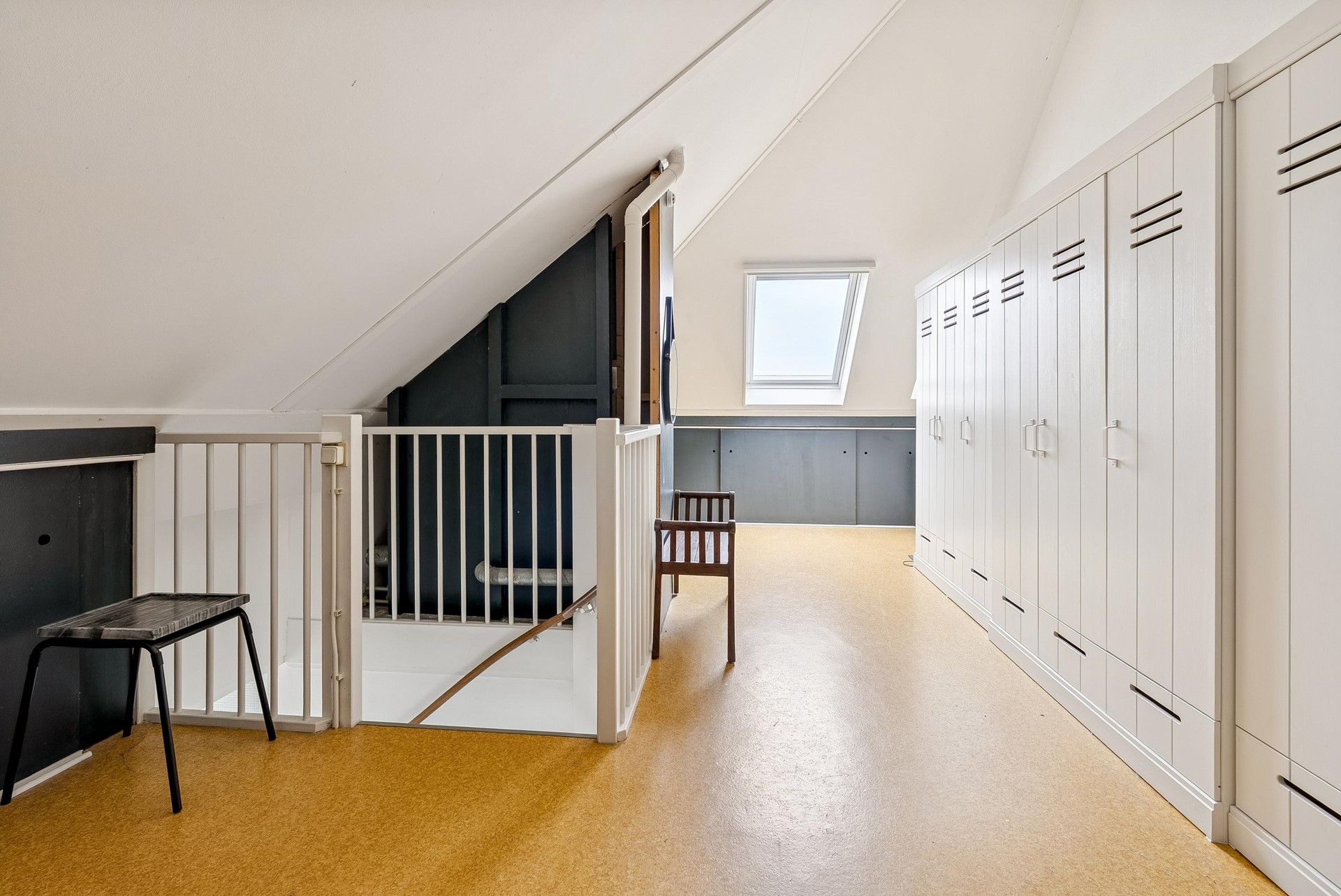 Een vaste trap leidt naar de tweede verdieping: een royale open zolderruimte met dakraam en een nokhoogte van 3.74 meter. De zolderruimte is nog vrij indeelbaar en indien gewenst kunt op deze verdieping nog een vierde slaapkamer realiseren. Daarnaast is er rondom bergruimte (middels schuifdeuren) aanwezig.
