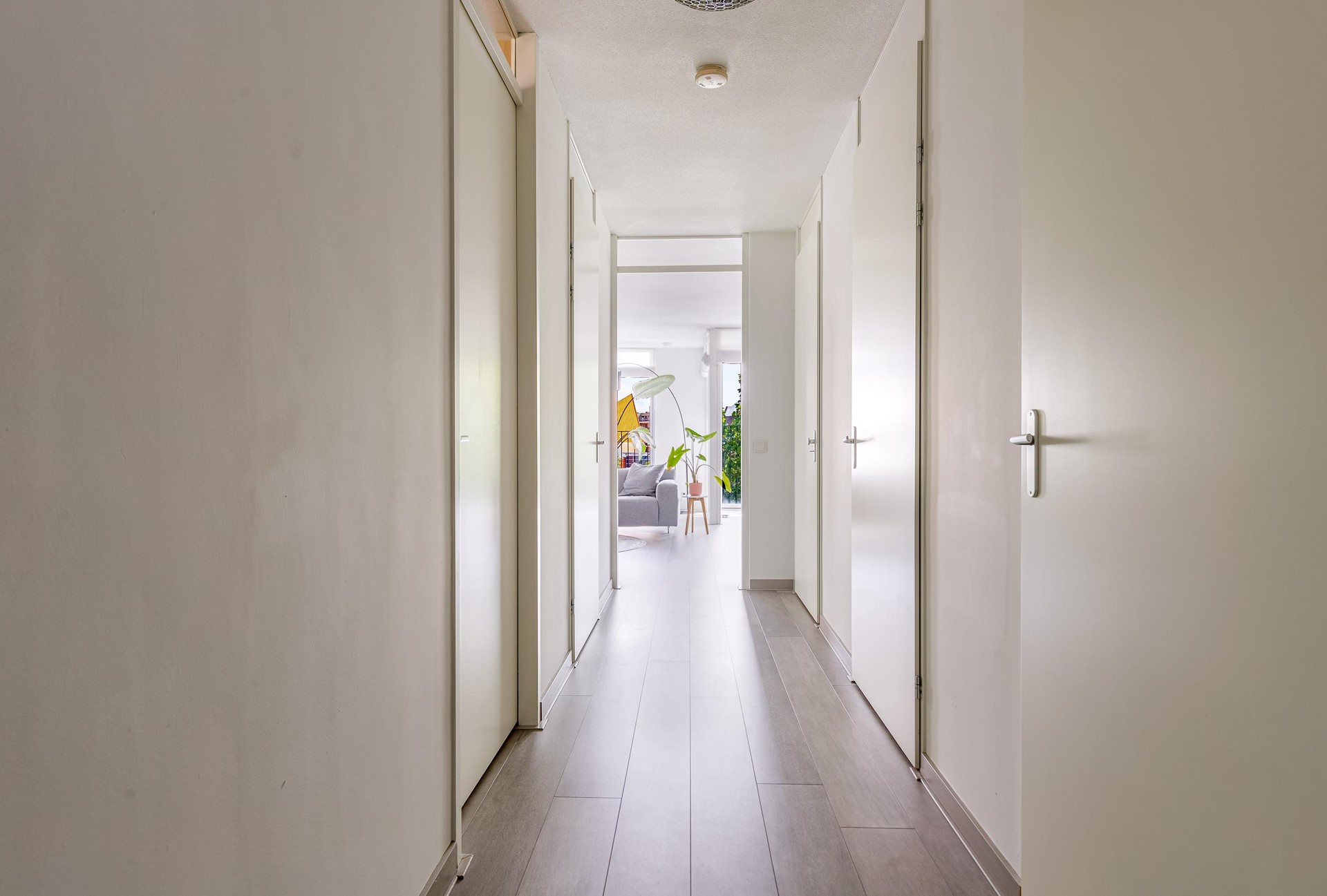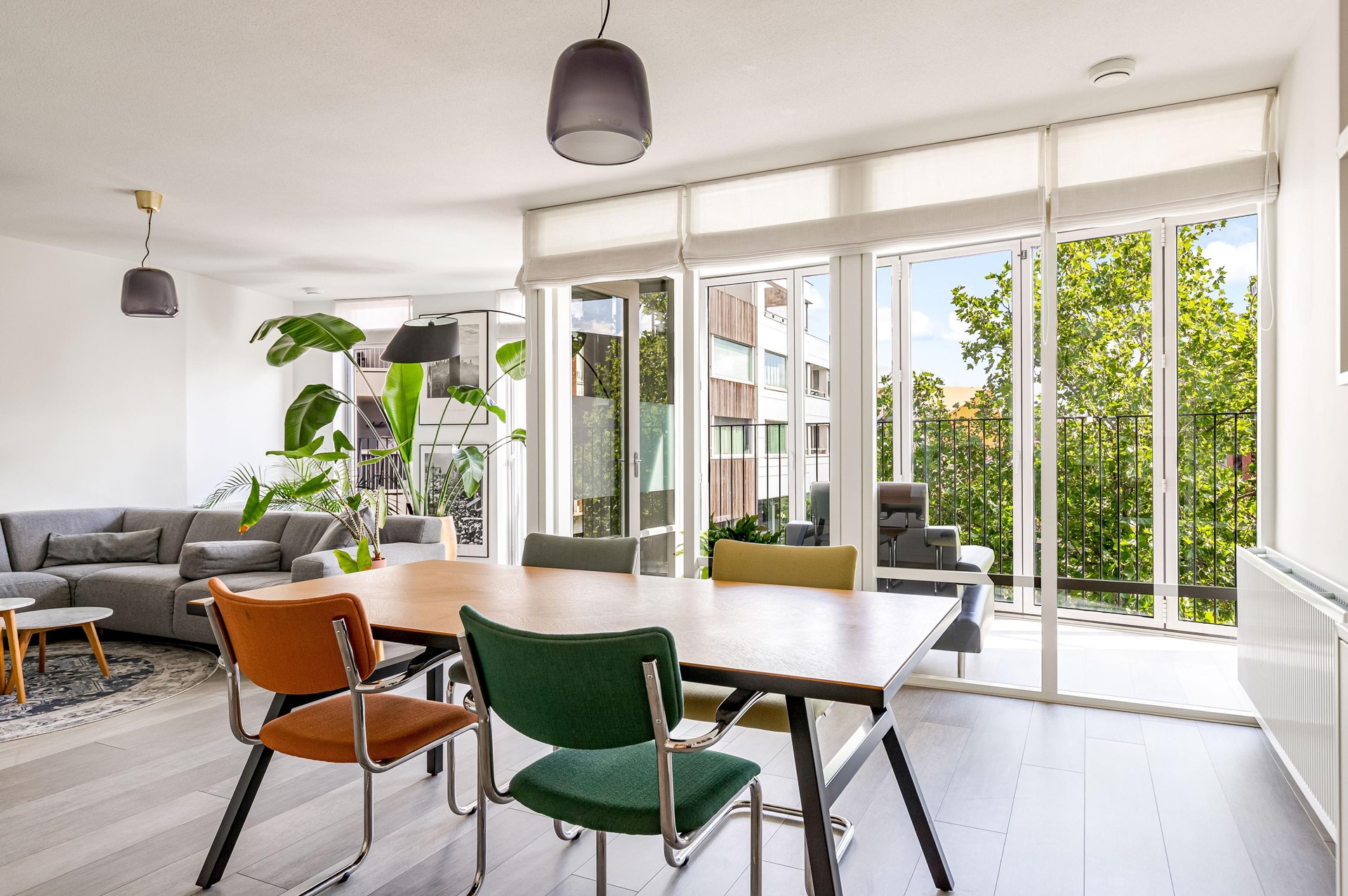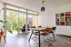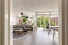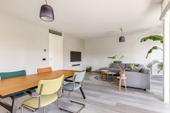 De royale woonkamer van circa 44,9 m² vormt het hart van de woning en biedt volop ruimte voor een ruime zitruimte en een grote eettafel. De woonkamer staat in open verbinding met de keuken en biedt toegang tot de inpandige loggia: een fijne plek om beschut te zitten, ongeacht het seizoen. Daarnaast kunnen de ramen van de loggia in zijn geheel opengezet worden, waardoor je in de lente en zomer heerlijk van het weer en het uitzicht kan genieten.