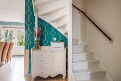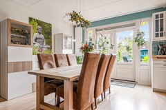 Bij binnenkomst kom je in een verzorgde hal. Hier vind je voldoende garderoberuimte, toiletruimte en de meterkast. De lichte woonkamer is voorzien van een laminaatvloer en openslaande deuren naar de achtertuin. Aan de achterzijde van de woonkamer bevindt zich de gloednieuwe keuken (augustus 2025) met moderne afwerking, hoogwaardige inbouwapparatuur en stijlvolle ledverlichting onder de bovenkasten. Vanuit de keuken bereik je een ruime berging.
