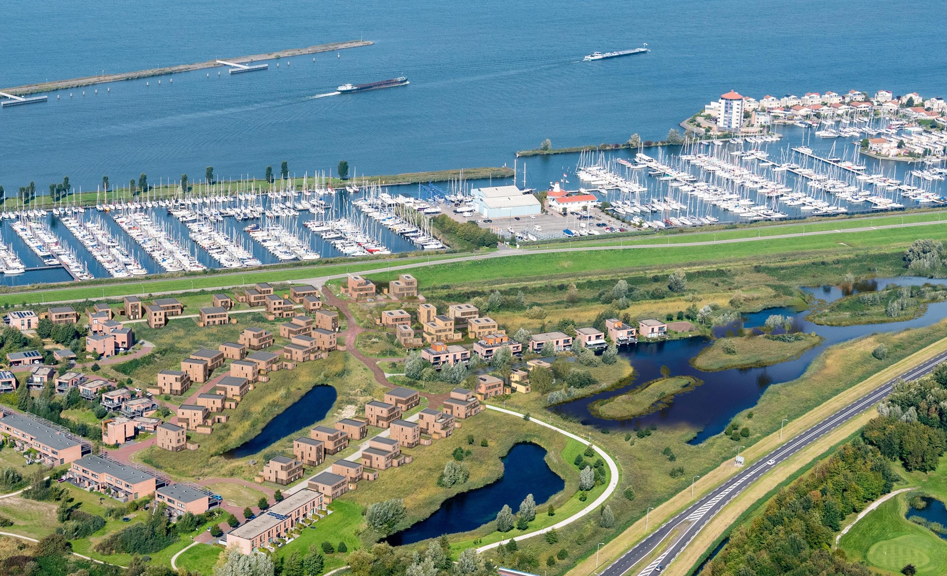 Vrijstaand en levensloopbestendig: slapen en badkamer op de begane grond, met uitzicht op water en haven.