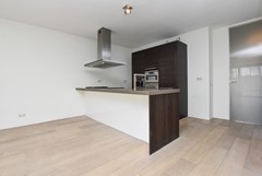 Entree, hal, meterkast en toiletruimte met vrij hangend toilet en fonteintje. Vanuit de hal te bereiken inpandige berging met opstelplaats CV- ketel, Mechanische Ventilatie unit en loopdeur naar de voorzijde van de woning. Ruime- en, mede door de grote raampartijen tot aan de grond, zéér lichte woonkamer met houten vloerdelen en schuifpui naar het riante-, vrij gelegen, terras met fraai uitzicht over mandelig (natuur)gebied. Ruime opstelmogelijkheden voor grote eettafel. In lichte kleurstelling uitgevoerde inbouwkeuken met schiereiland voorzien van diverse inbouwapparatuur. Middels schuifdeur te bereiken trap naar de kelder.