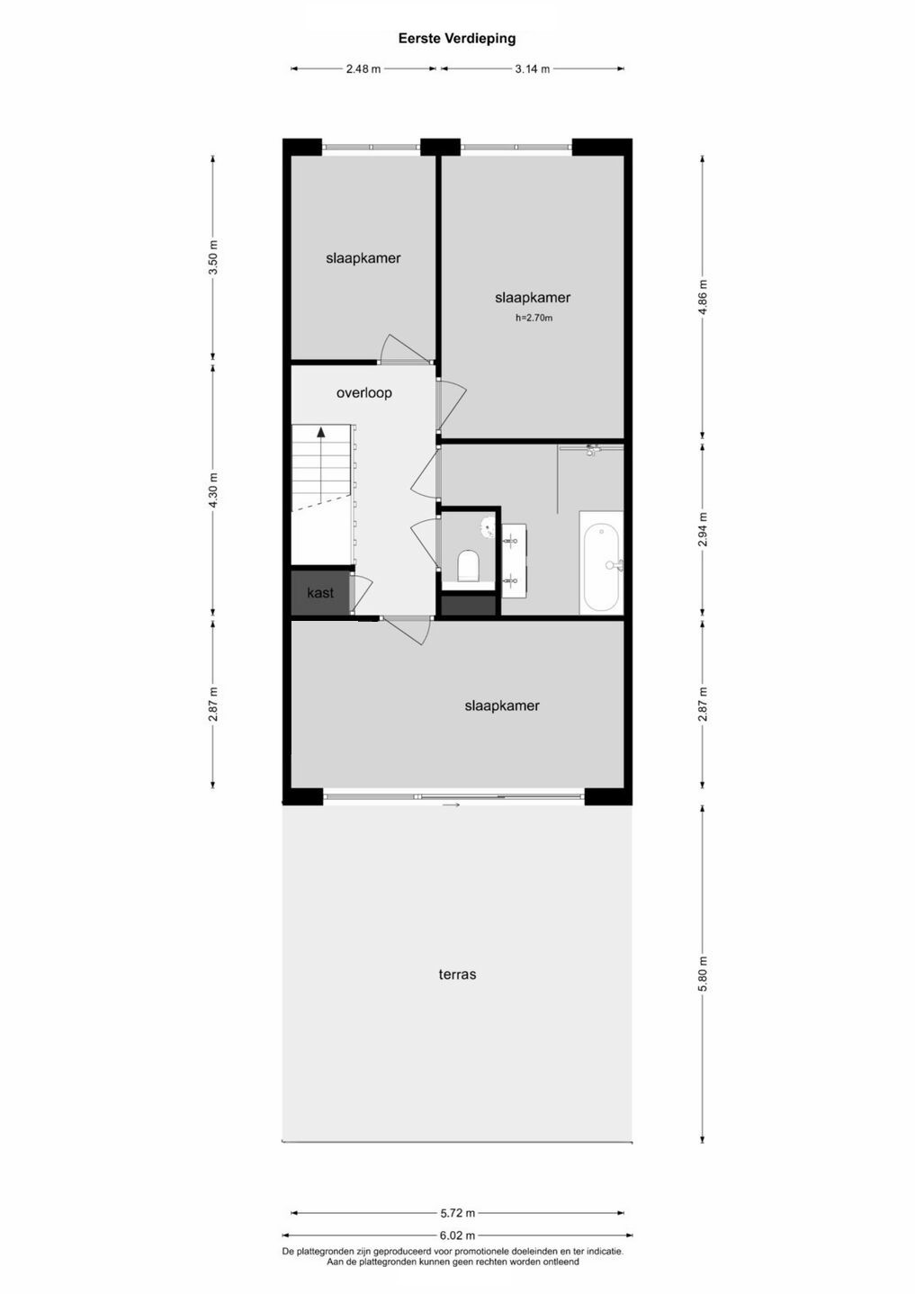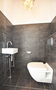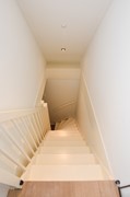 Overloop. 3 ruime slaapkamers, waarvan 1 met schuifpui naar het riant dakterras. Licht betegelde badkamer met inloopdouche, ligbad, breed badkamermeubel met 2x wastafel kraan en een designradiator. Separate toiletruimte met (tweede) vrij hangend toilet en fonteintje.