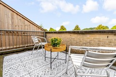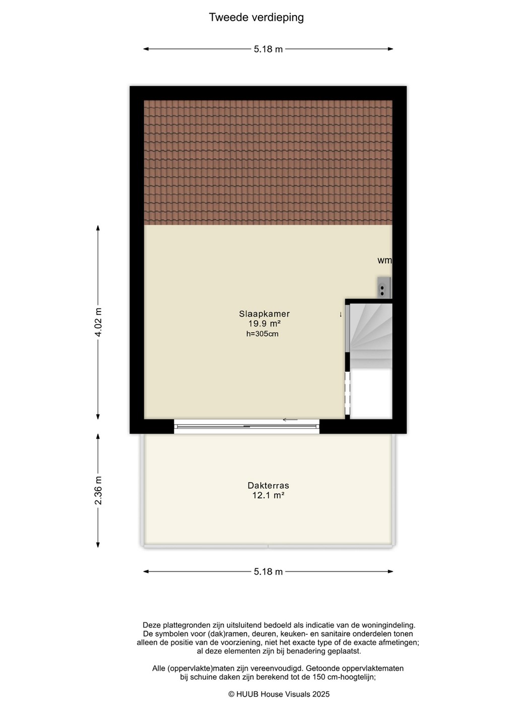 Via een vaste trap bereik je de ruime zolderverdieping van ca. 19,9 m². Hier bevindt zich een vierde slaapkamer met toegang via de schuifpui tot het ruime dakterras van ca. 12,1 m². Hier vind je ookde opstelplaats van de CV-ketel en was/droger aansluiting.