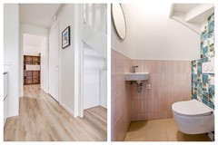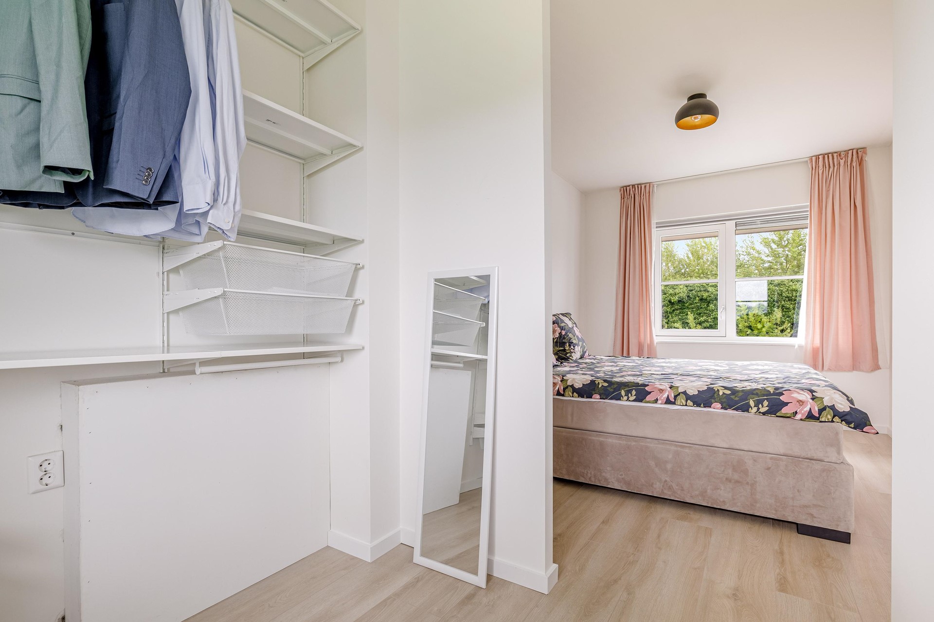 Drie ruime slaapkamers, waarvan de master met inloopkast. Complete badkamer met toilet, inloopdouche en ligbad. Ook hier een lichte, strakke afwerking en een plafondhoogte van 2,60 m.