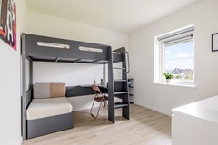 Volwaardige verdieping met ruime vierde slaapkamer, werkkamer (ideaal voor thuiswerken of studeren) en tweede badkamer met toilet en douche. Een perfecte tienerverdieping of gastenetage.