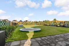 De zuidwest-gerichte achtertuin (ca. 35 × 15,5 m) is een verlengstuk van je leefruimte: een riant terras voor lange zomeravonden en een zitkuil aan het water voor ultiem ontspannende momenten. Aan de voorkant (ca. 9 × 15,5 m) ligt een verzorgde voortuin met brede oprit voor meerdere auto’s.