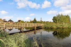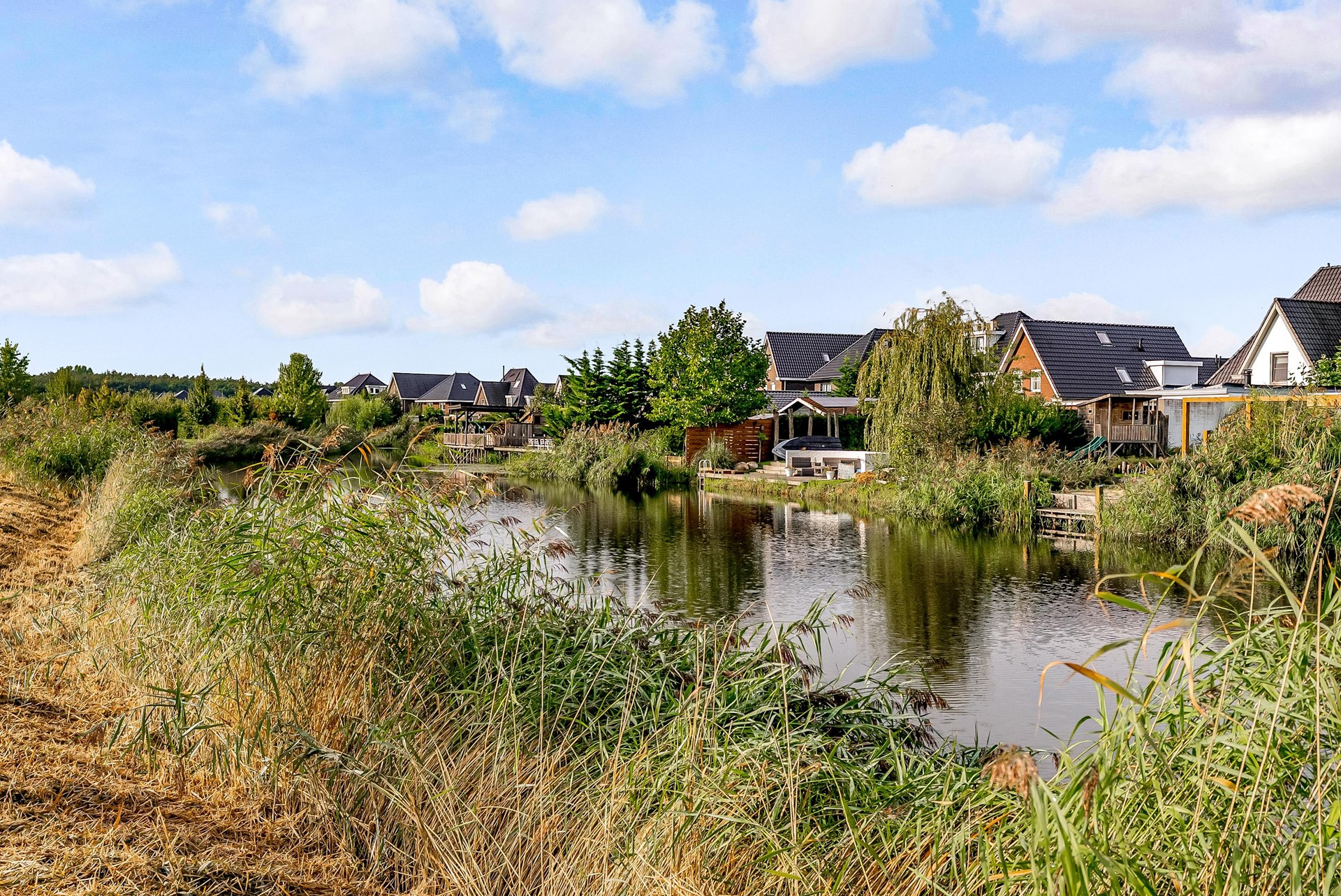 - Tuin: zuidwest, ca. 35 × 15,5 m, groot terras en zitkuil aan het water