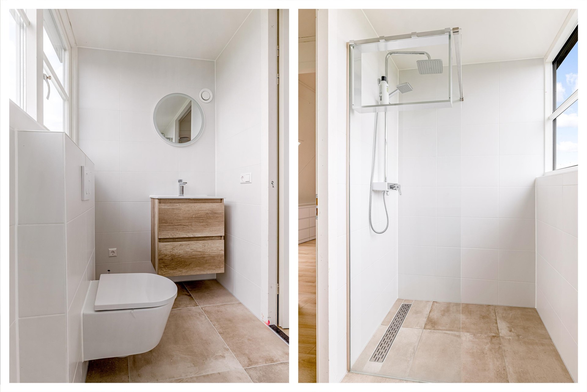 Drie ruime slaapkamers, waarvan de master met inloopkast. Complete badkamer met toilet, inloopdouche en ligbad. Ook hier een lichte, strakke afwerking en een plafondhoogte van 2,60 m.