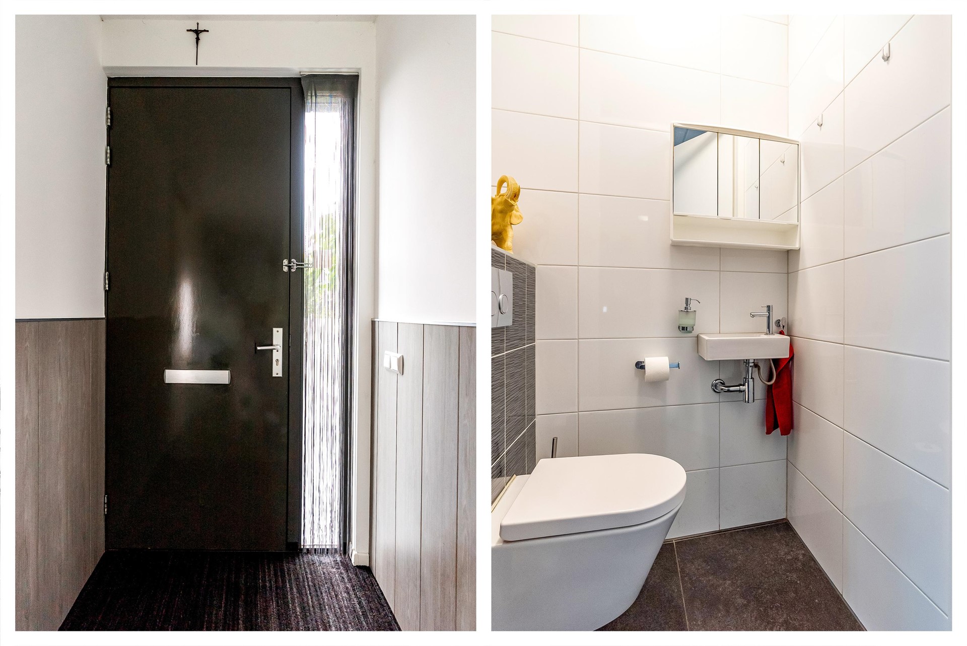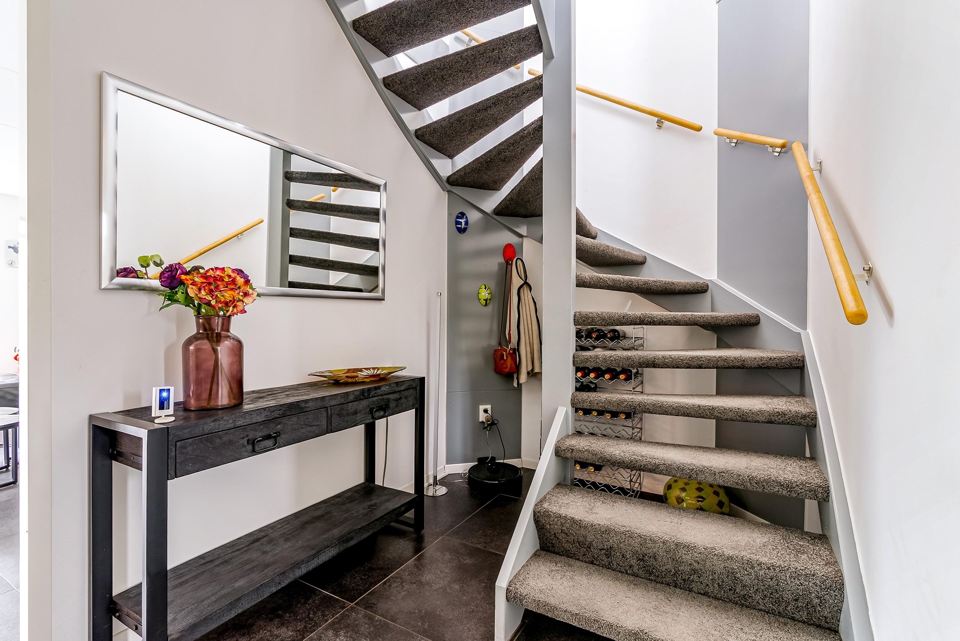 Grote hal met toilet, meterkast, trapopgang en praktische berging van 6,8 m².
