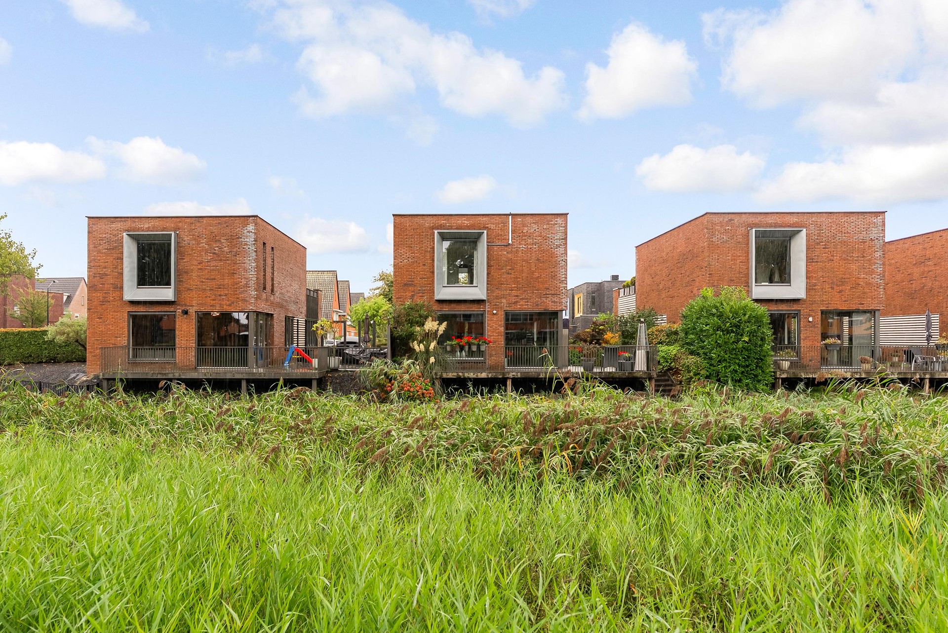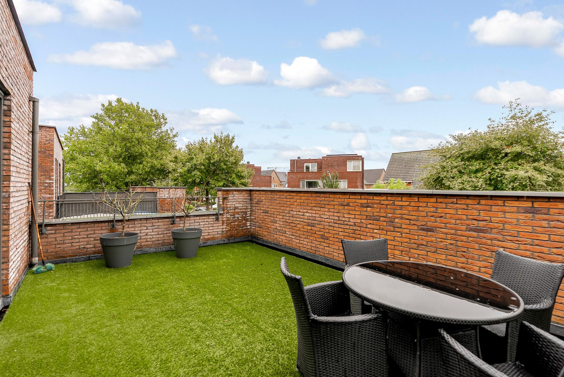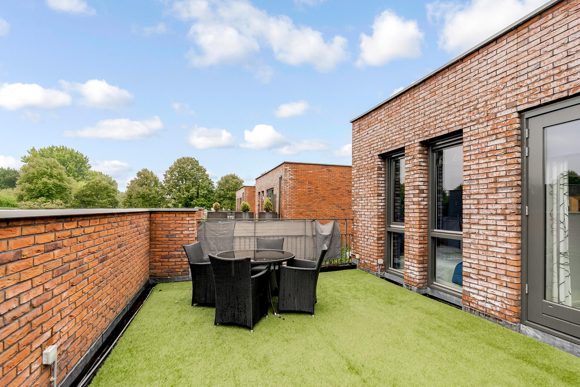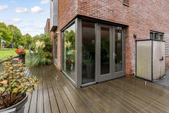 Extra berging (ca. 5,4 m²) met warmtepomp en bergruimte. Toegang tot een riant dakterras met kunstgras – heerlijk privé van de zon genieten.