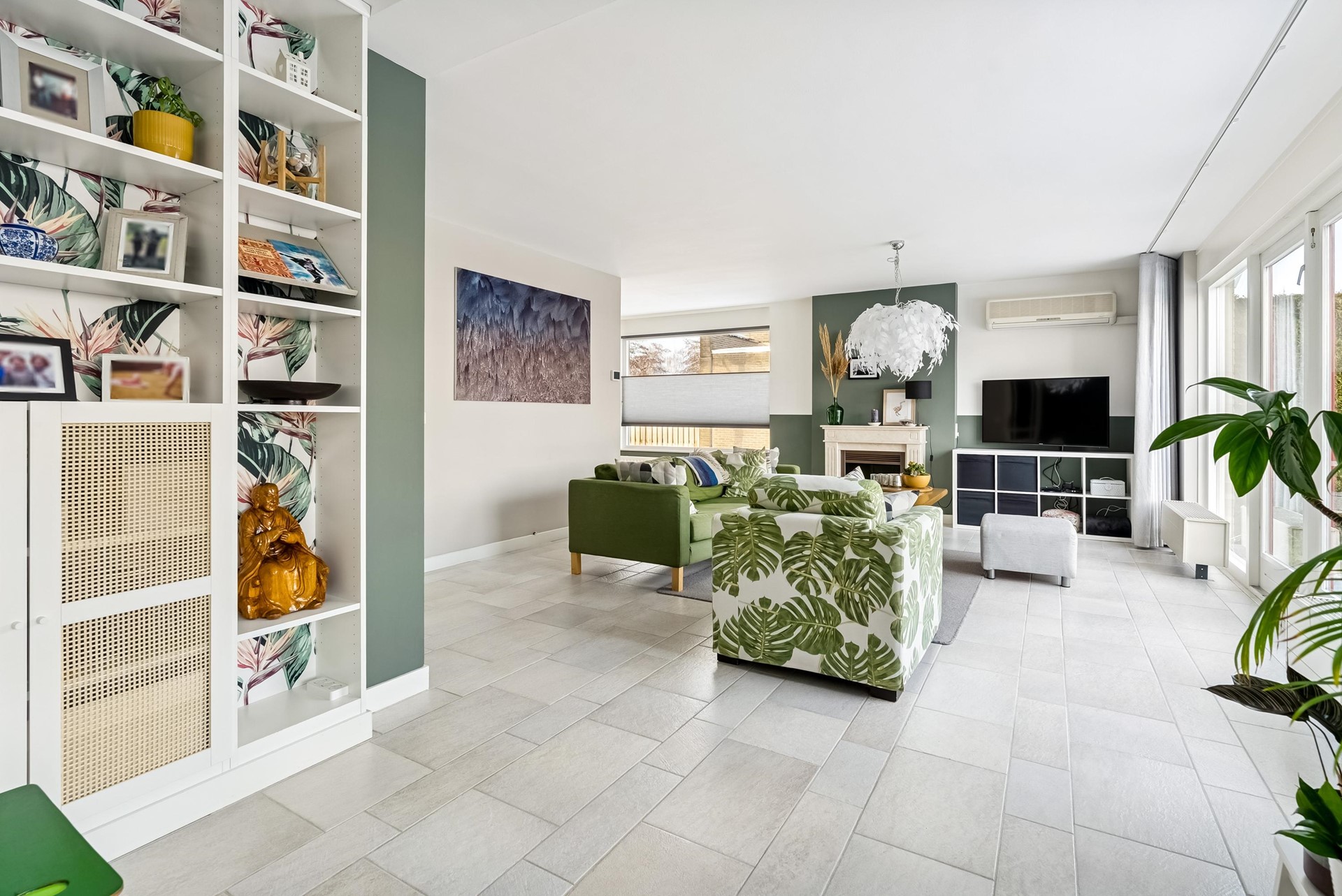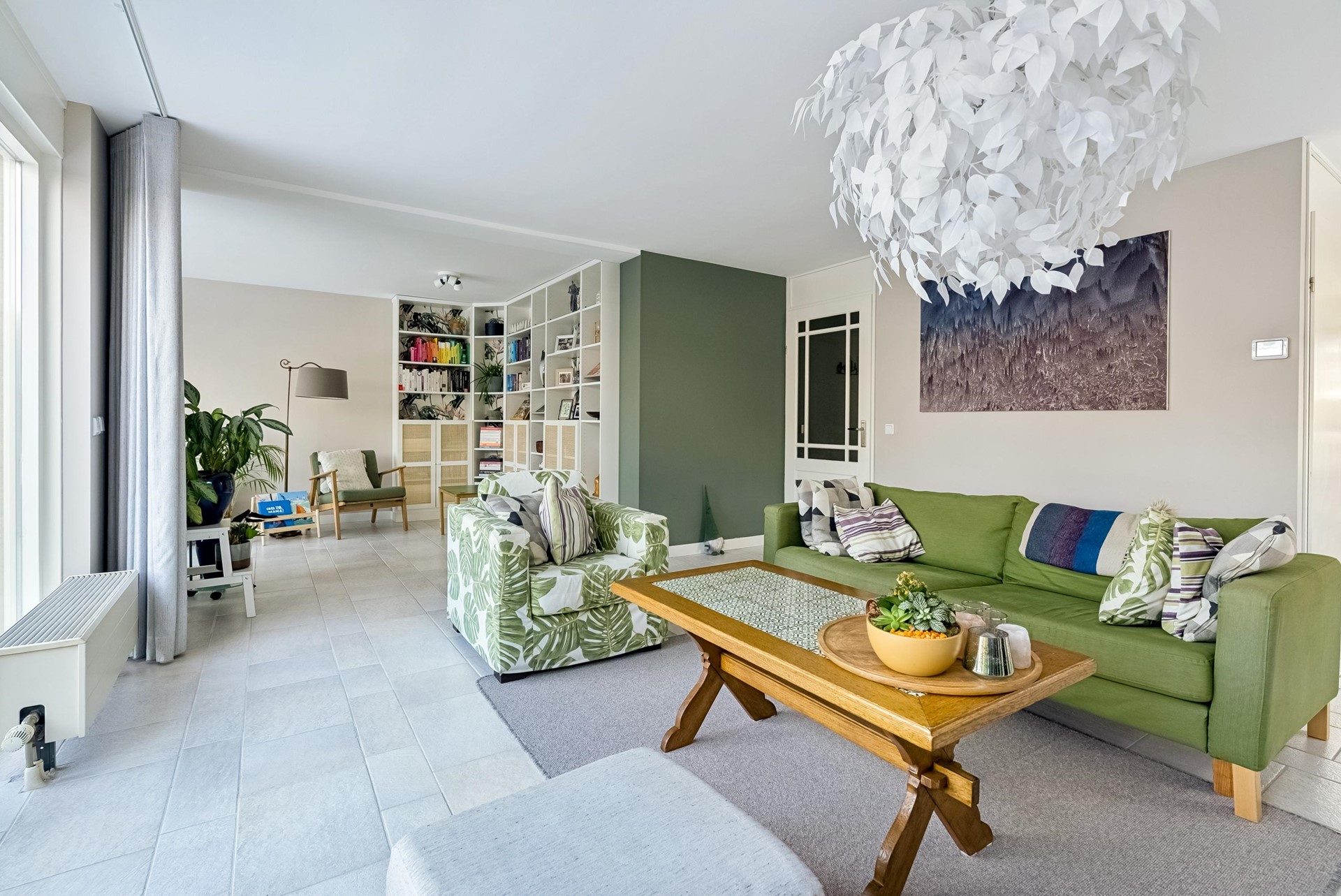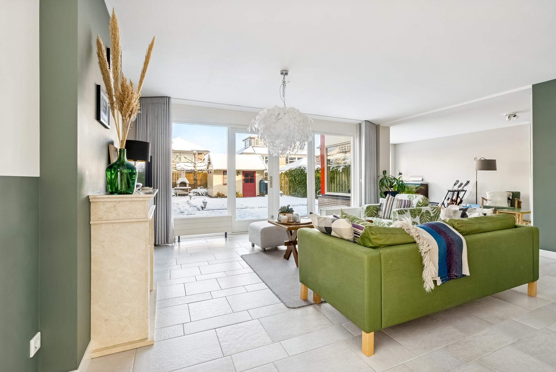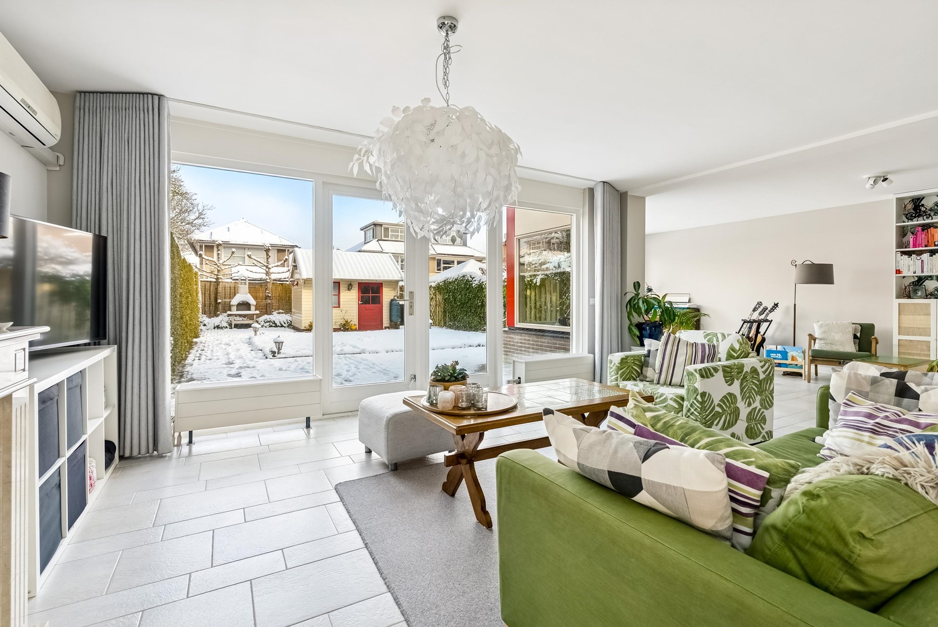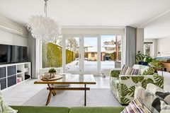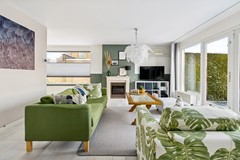 Brede, tuingerichte woonkamer met veel lichtinval