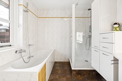 De badkamer is compleet uitgevoerd met ligbad, douche, wastafelmeubel en raam voor daglicht en ventilatie. Daarnaast is er een separate toiletruimte op de overloop.