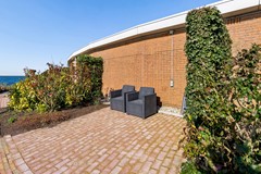 Centrale entree met lift en trappenhuis. Afgesloten entree met intercominstallatie. Vanuit hier bereik je de berging en daarnaast is er toegang tot de fraai aangelegde gemeenschappelijke tuin rondom het complex en de gezamenlijke fitnessruimte. Buiten naast de entree ligt de eigen garage met parkeermogelijkheid.