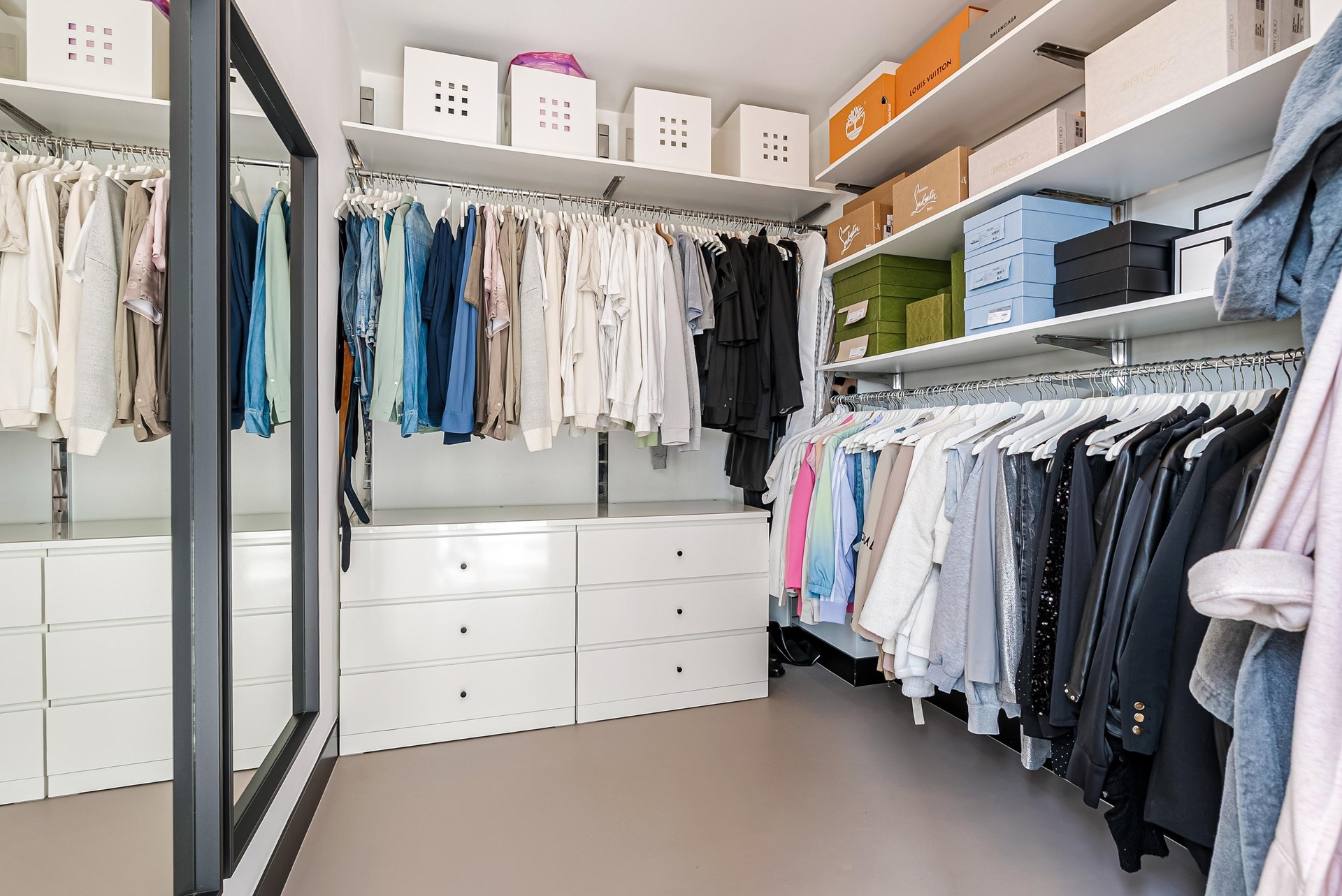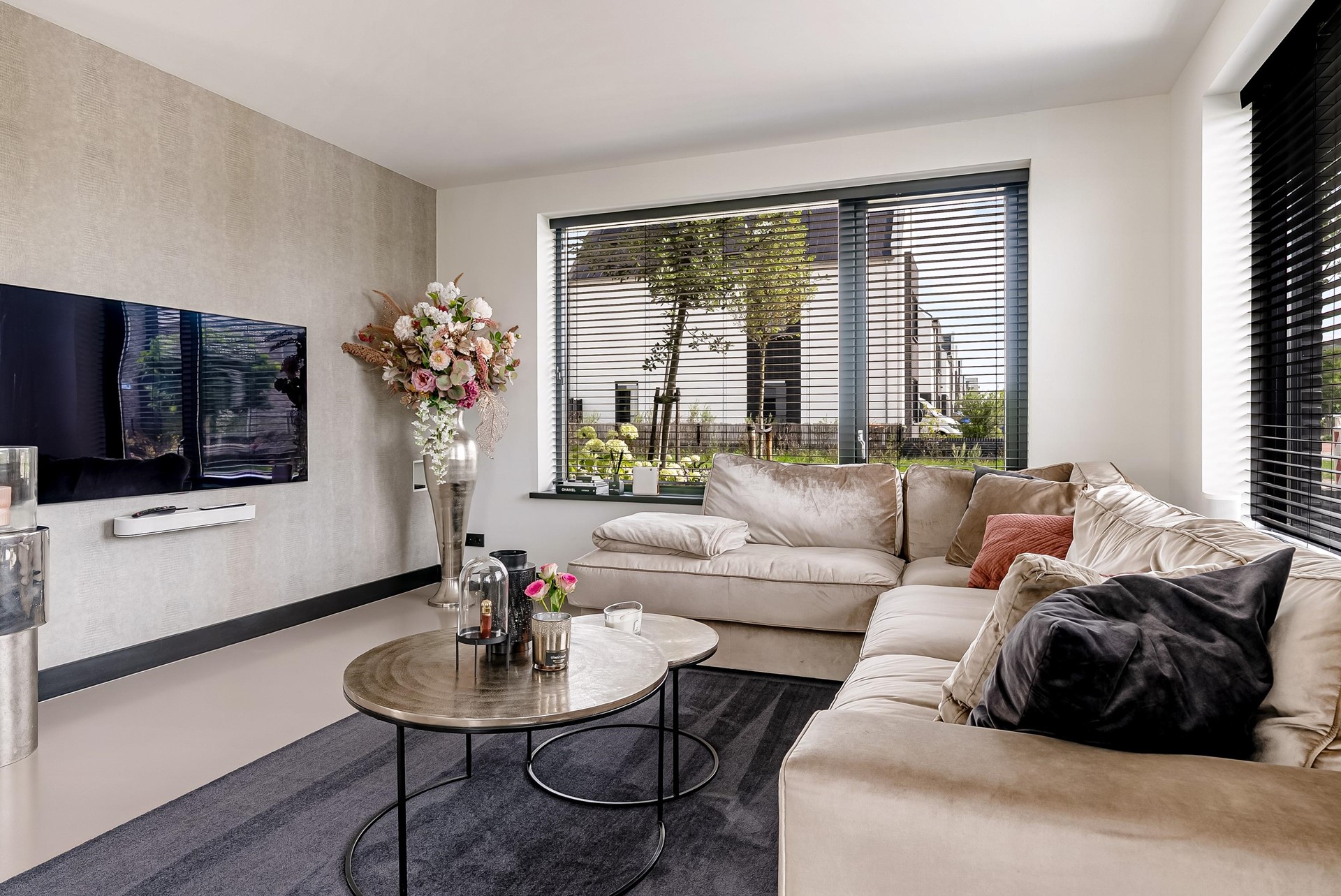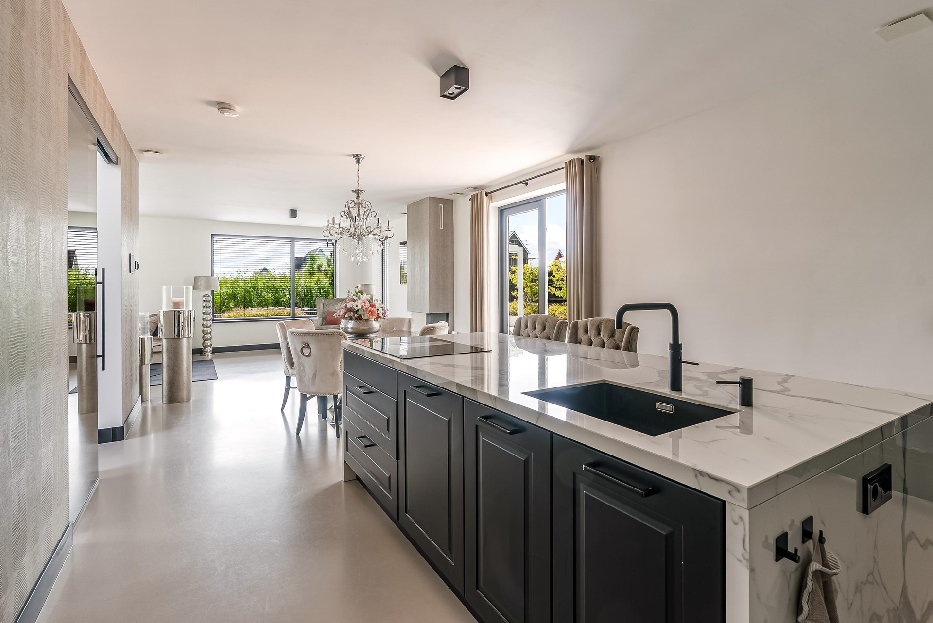 De gehele begane grond is voorzien van een stijlvolle gietvloer met vloerverwarming/-koeling die doorloopt over de gehele verdieping.