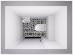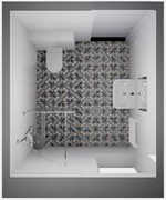 De moderne badkamer (zie impressie) wordt compleet opgeleverd met toilet, douche en wastafel, waarbij de sfeervolle betegeling zorgt voor een luxe uitstraling. Ook deze verdieping is voorzien van vloerverwarming.