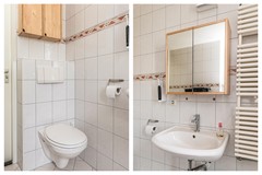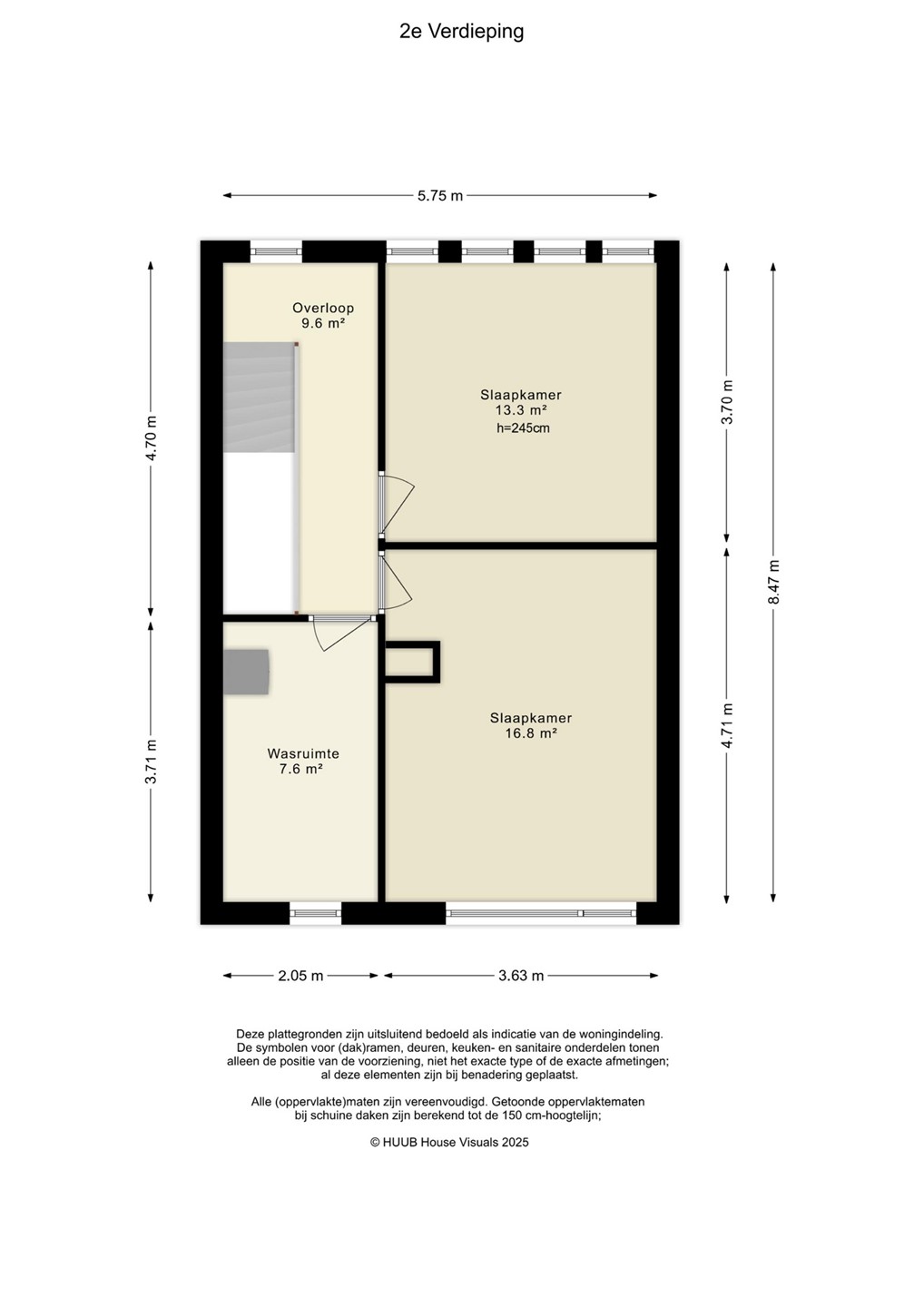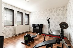 Dankzij de rechte wanden van de woning zijn ook hier twee volwaardige, lichte kamers gecreëerd van respectievelijk circa 13,3 m² en 16,8 m². Daarnaast biedt de ruime overloop toegang tot een zeer praktische aparte wasruimte van circa 7,6 m², ideaal voor wasmachine en droger. De gehele verdieping is uniform afgewerkt met laminaat, wat zorgt voor een verzorgde uitstraling.