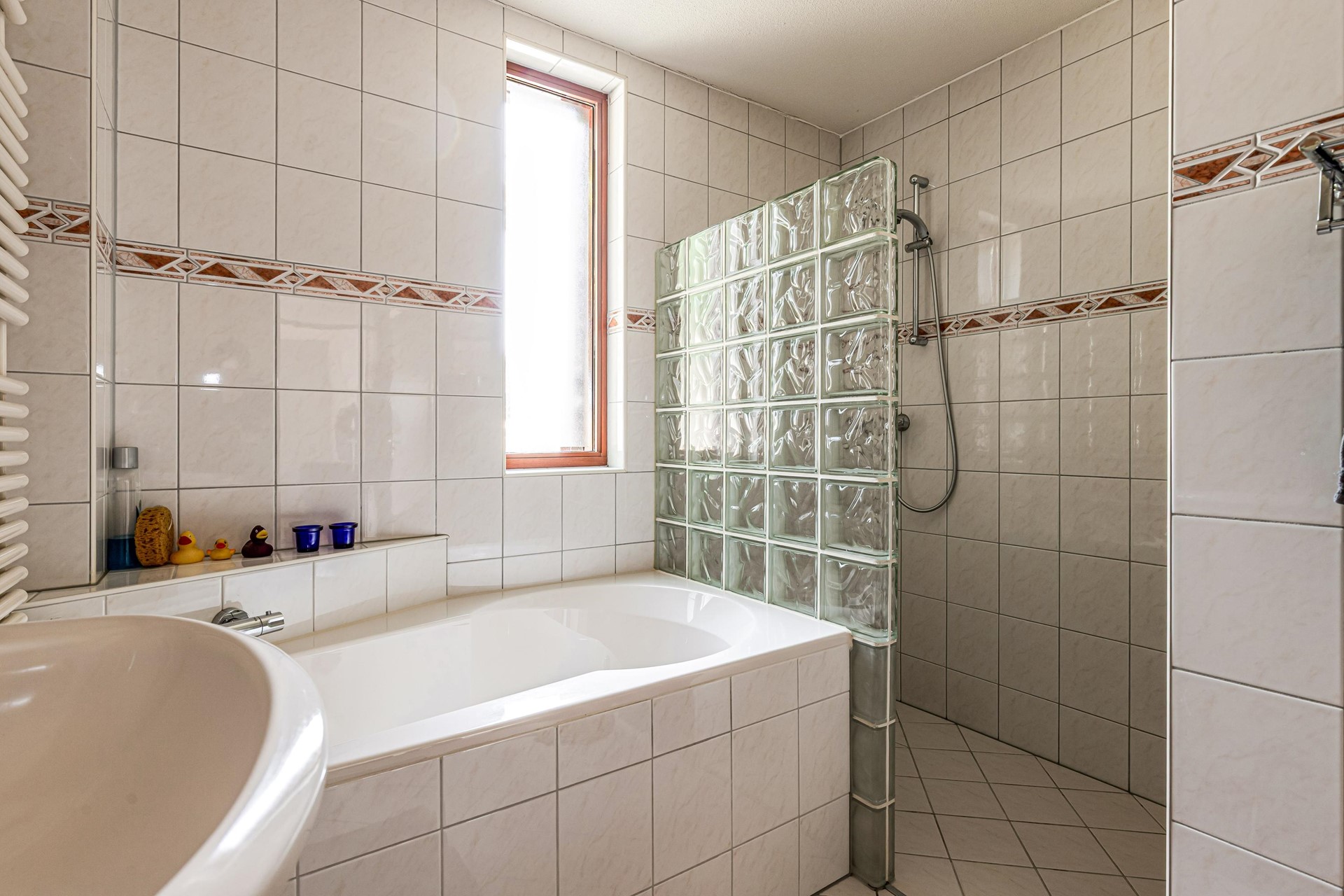 De eerste verdieping biedt een zee aan ruimte met twee riante slaapkamers van respectievelijk circa 16,1 m² en 15,7 m². De gehele verdieping is keurig afgewerkt met een laminaatvloer. De complete badkamer van circa 6,3 m² is praktisch ingedeeld en beschikt over zowel een ligbad als een aparte douche, een wastafel en een tweede toilet.