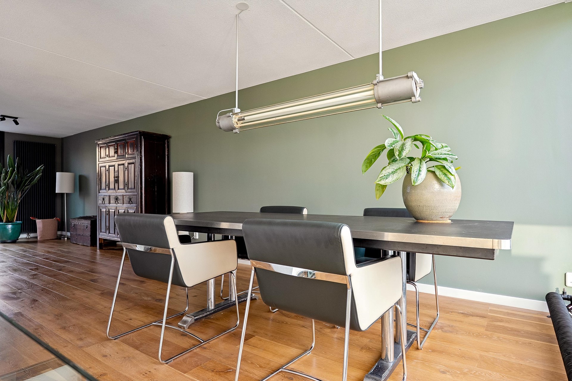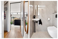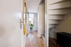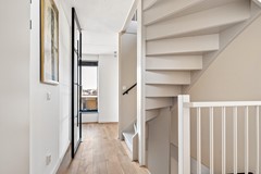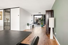 Via de entree komt u in de hal met toegang tot de inpandige garage, de bijkeuken en een modern toilet (2026). Vanuit de hal bereikt u de woonkamer via een stijlvolle stalen schuif-taatsdeur.