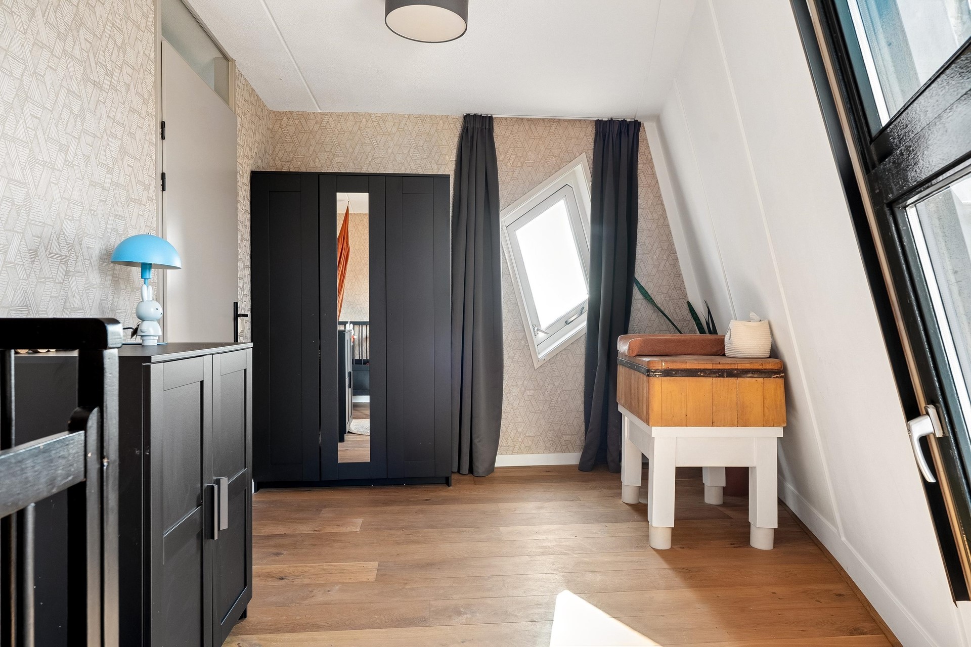 Aan de achterzijde bevindt zich de tweede slaapkamer van circa 9,5 m².