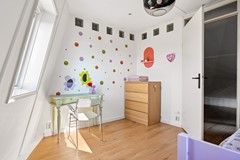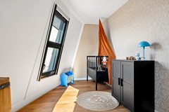 Via een vaste trap bereikt u de tweede verdieping. Hier bevindt zich een extra slaapkamer van circa 9,5 m² met dakraam, een voorzolder en praktische bergruimte.