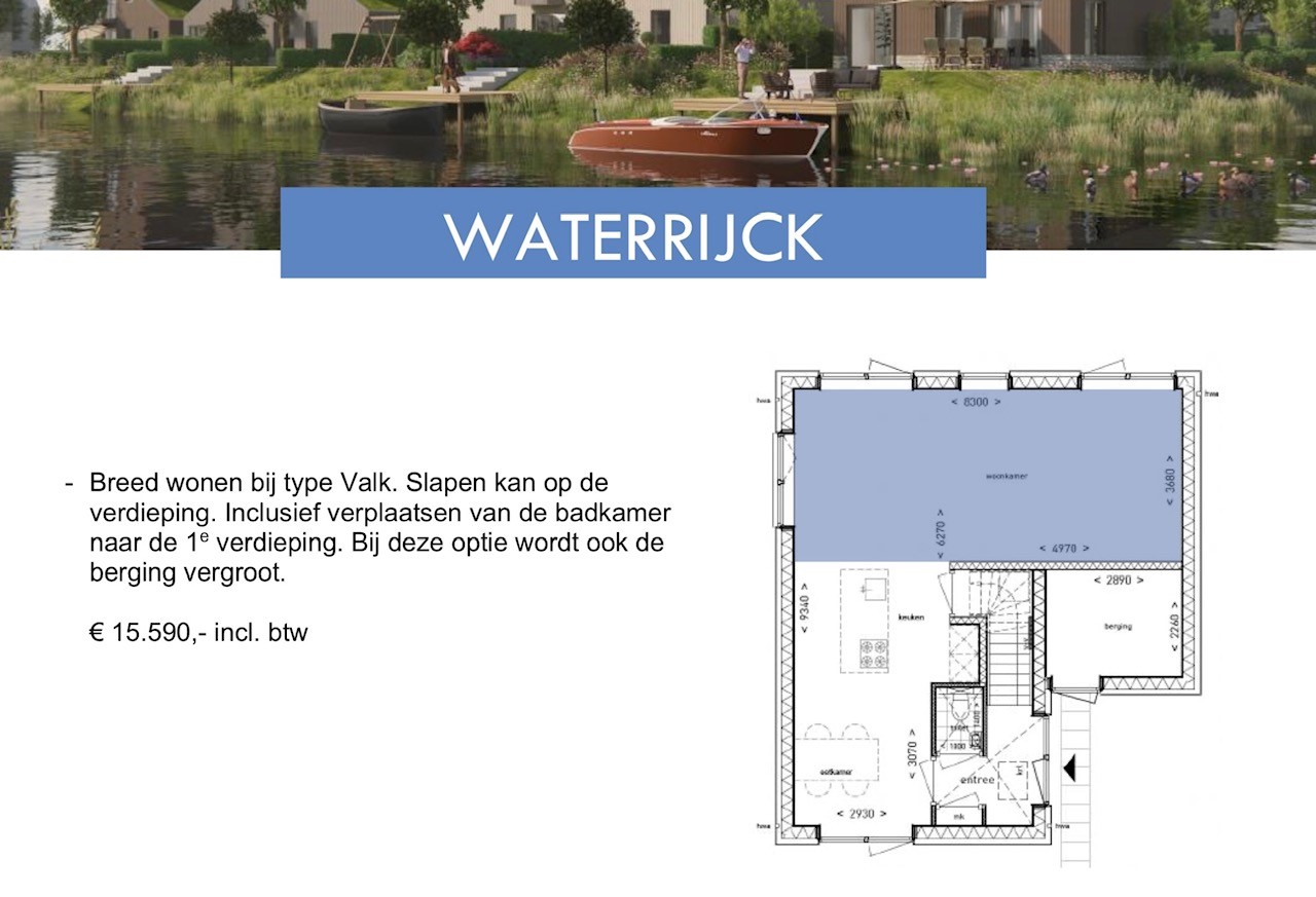 Bouwnummer 24 (type Valk) is your opportunity to live detached, sustainably and future-proof in a green, water-rich environment. Contact us or visit www.woneninwaterrijck.nl for more information.