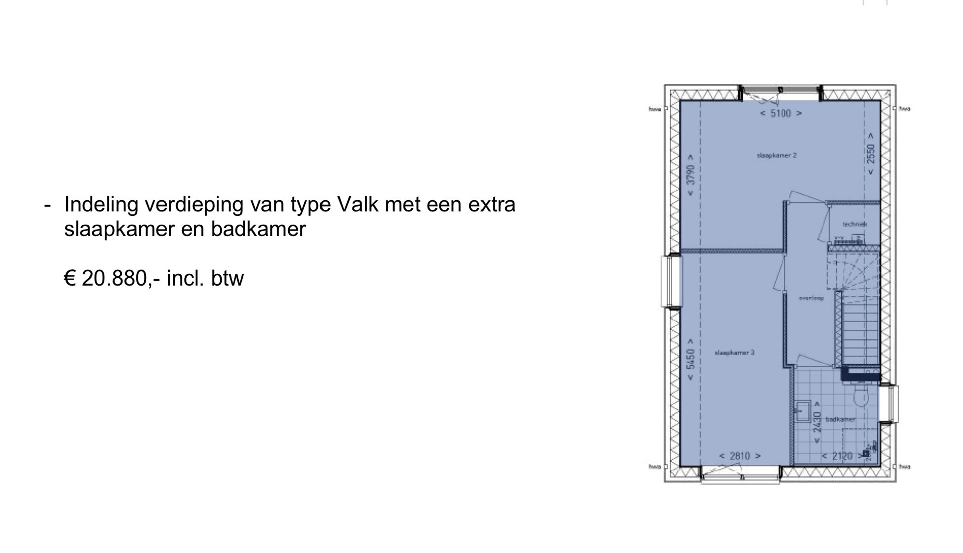 Flexibele indeling: mogelijkheid tot extra slaapkamer en 2de badkamer op de verdieping